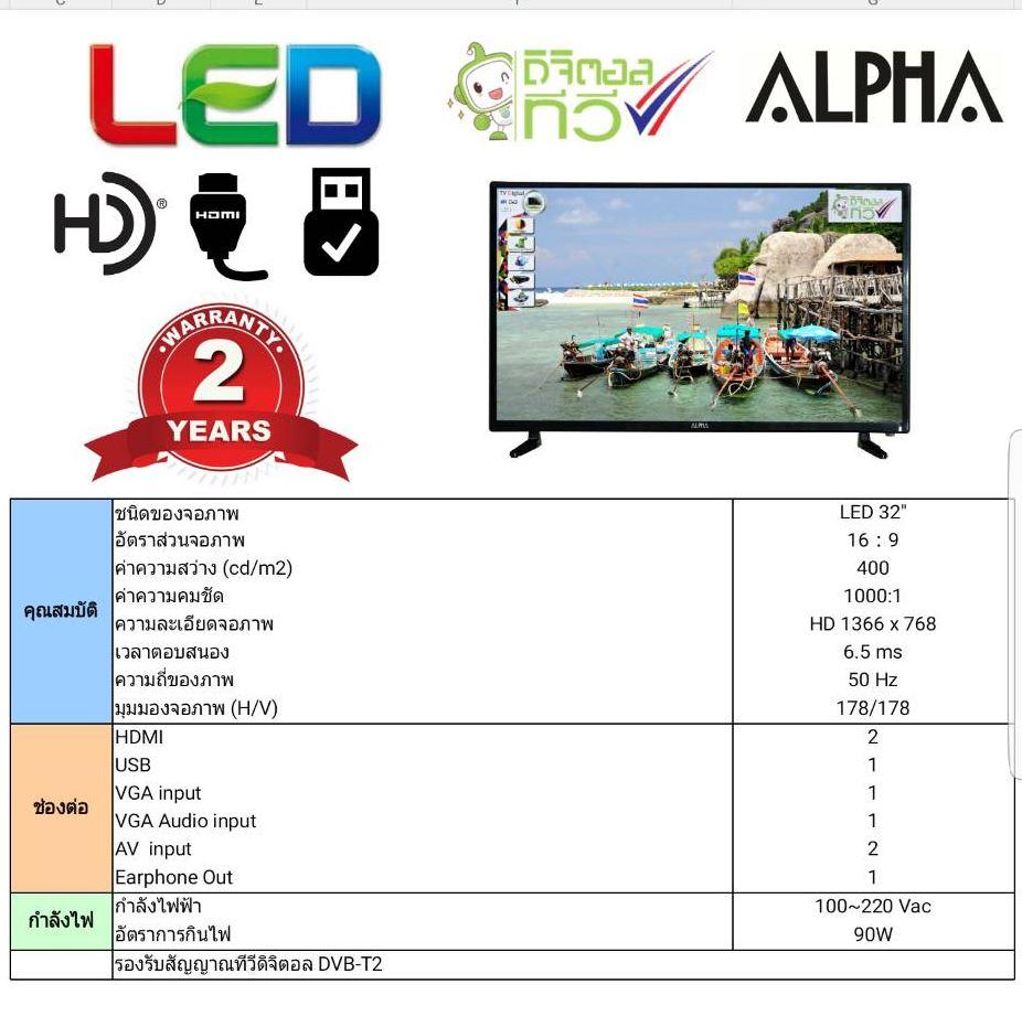 ดูรีวิว ALPHA Digital LED ทีวี 32 นิ้ว (ส่งฟรี) คลิกที่นี่ >>