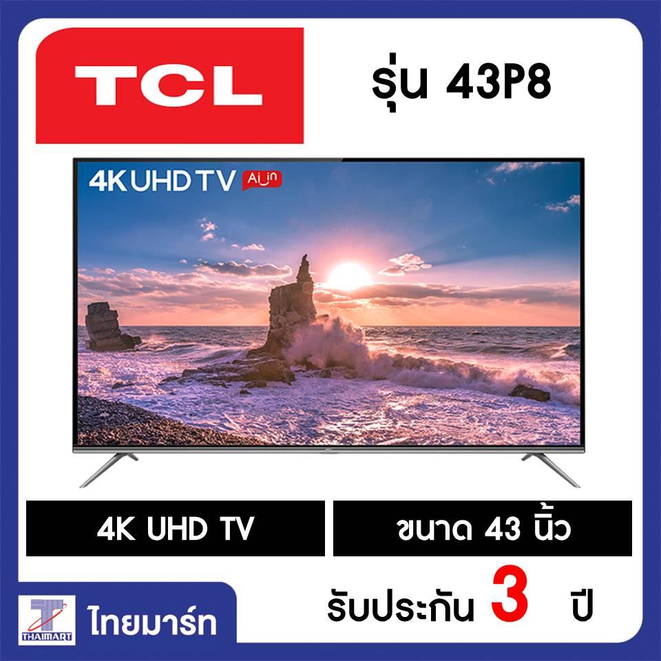 TCL 43 นิ้ว LED 4K UHD Android 9.0 รุ่น 43P8/Thaimart/ไทยมาร์ท มีสต๊อกพร้อมในไทย มีส่วนลดราคาประหยัดที่สุด